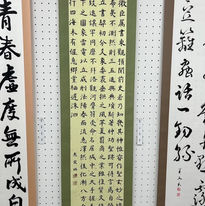 ある程度のレベルに達しますと、小・中学生は年に四回、高校生以上は年に二回の「全国検定」(日本教育書道連盟主催)を実施致します。また、季節に合わせて書き初め、うちわやのれん作り、印を彫ったり等、書にまつわる楽しい取り組みも行います。硬筆も同時に学び総合的な力を養える様カリキュラムを組んでおります。目に見える目標を持ち書を通しての礼儀を身につけ文字を書くことを好きになってほしいと願っております。とにかく楽しくのびのびと、ときには厳しく進めていきます。